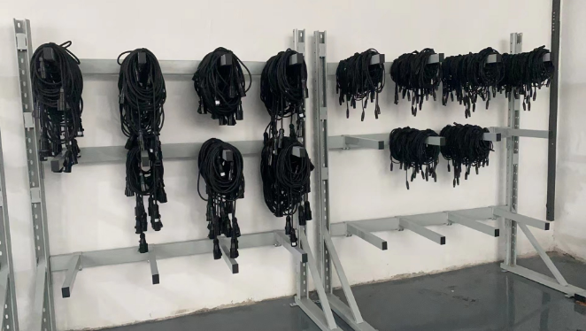 倉儲中為了應對這樣的難題,我們對此做了一些創新,設計了懸臂貨架。兩根突出來的懸臂中間放上一根鋼管,電線電纜可以在存放的時候繞好穿插在鋼管上,這樣無論放置多久都不會散亂,取得時候也極為方便,只需要拿下鋼管即可。有外出任務的時候,還可以直接帶著鋼管走,這樣到了工作地點,線纜也不會出現雜亂的問題。