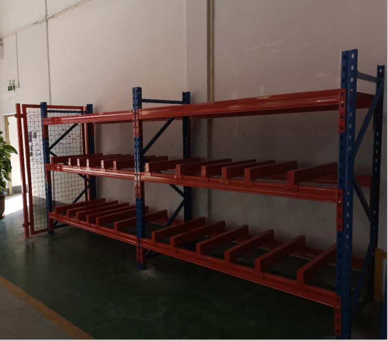 上圖是我司根據客戶要求來設計生產,首先是根據客戶場地來設計,目前客戶場地的是5.5米長,由于客戶的模具大小不一,還有的需要放到卡板上,由于模具較大又很重,所以只做2層,頂上一層鋪鋼板,這樣可以放一些小物件及雜物,太高的話不方便上下貨。由于長度限制貨架就做1主2副,防止模具脫落,特意在兩側增加側網,模具架由立柱加拉桿組成柱片,將導向槽安裝于柱片之上,上下用橫梁連接固定,接著將抽屜盤安裝于導向槽內,如廠房內無行吊,還可在貨架立柱之上架設天軌和天車,并可安裝手動或電動葫蘆,天軌采用不低于100×50抱焊橫梁。整體部件做好黑胚后經拋丸除油、除銹,噴塑最后一道表面處理工藝,完成后便可包裝發貨。